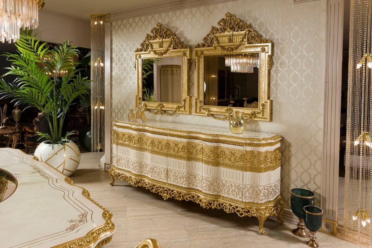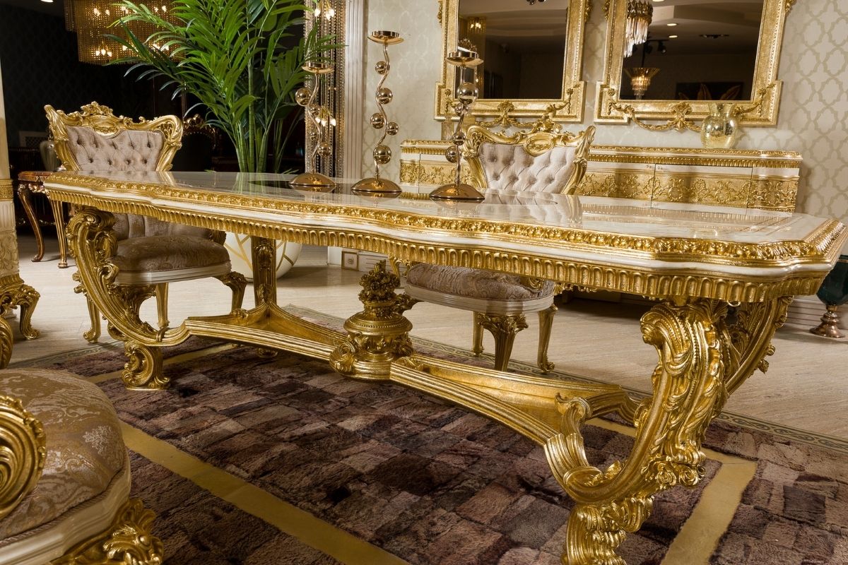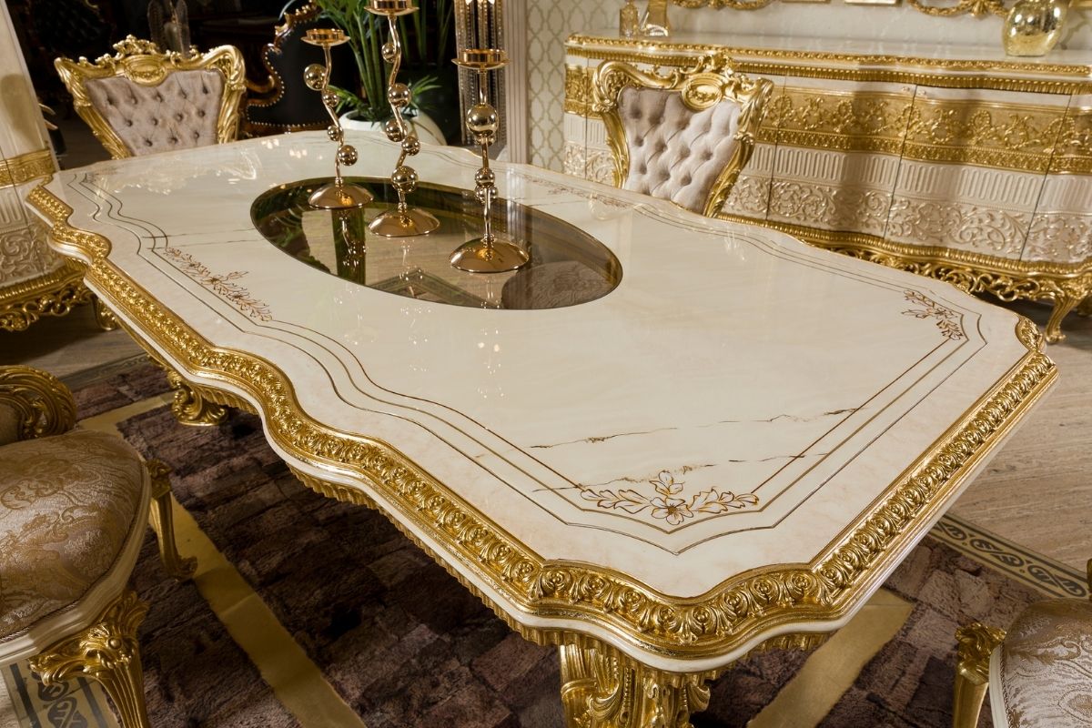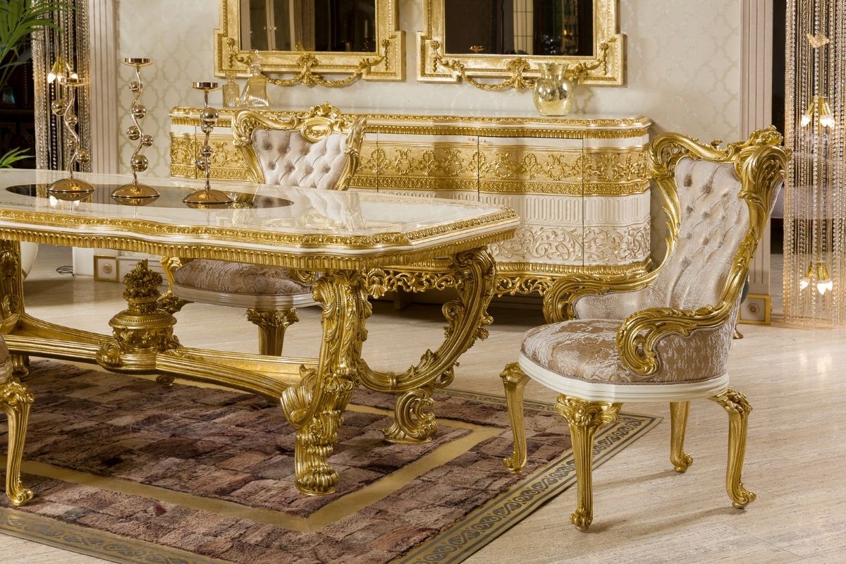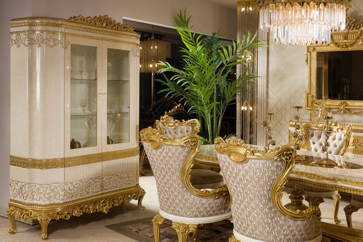 The comfortable structure of the table and chairs offers comfort to your guests during long dinner invitations, while the display cabinet and console provide both a functional and decorative area. While the display cabinet offers a stylish area to display your valuables, it adds depth to the space with its mirror on the console. All these pieces bring the elegance of classic furniture to modern living spaces.