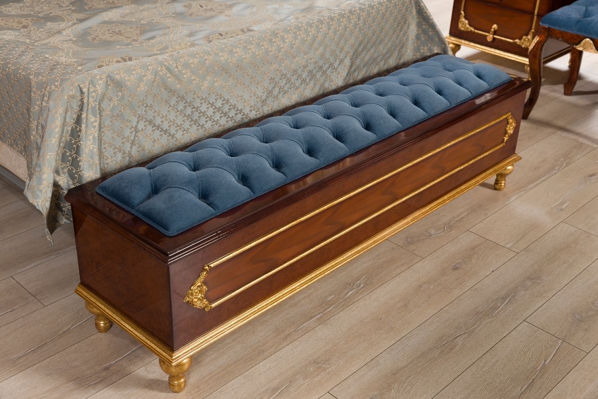 Asortie’nin yeni sezon klasik yatak odaları koleksiyonunun en görkemli modeli olan ve doğal ahşaptan el işçiliği ile üretilen Nilüfer klasik yatak odası takımı, görkemli ve zarif tasarımı ile yaşam mekânlarına zengin bir stil kazandırıyor. Ceviz zemin üzerindeki altın varak oyma motifleri klasik yatak odası tasarımı üzerine şık bir zerafet kazandırdı.