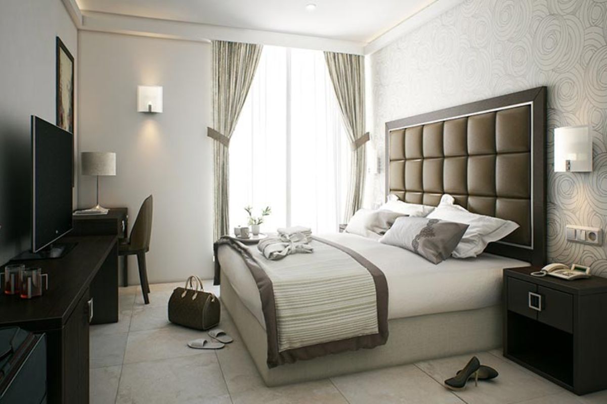 Otel odası dekorasyonu daha sade ve natürel bir görünüme sahip olsun diye yatak başlığı düz renk kumaşlar ile kaplandı. Bu hali ile şık bir görünüme sahip olan yatak başlığı otel odasına zarif bir atmosfer kazandırıyor. Aynı zamanda otel odasında bulunan komodinler, çalışma masası, sehpa, valizlik ve gardrop da hem kullanılışlı hem de estetik bir yapıya sahip. Asortie Mobilya, lüks otel projelerinde perde, duvardan duvara özel otel halısı, kapı, kapı kilit sistemleri, otel odası aksesuarları gibi her ihtiyacı karşılayarak sizlere anahtar teslim bir proje sunuyor. Şimdi modern ve klasik otel odası projeleri hakkında daha fazla bilgi almak için, ürün bilgi formunu doldurabilirsiniz.