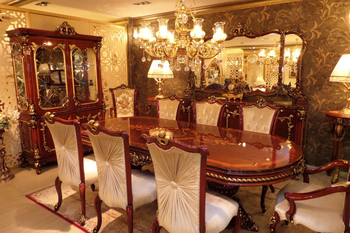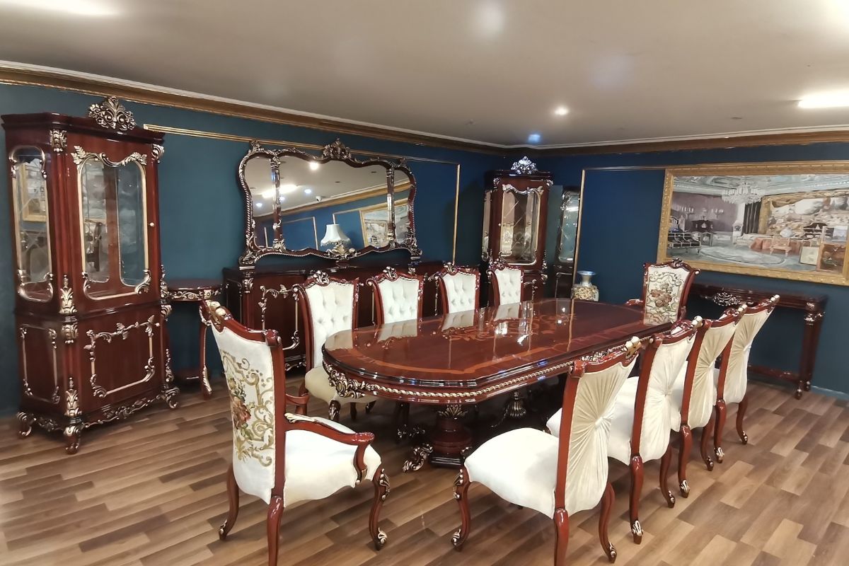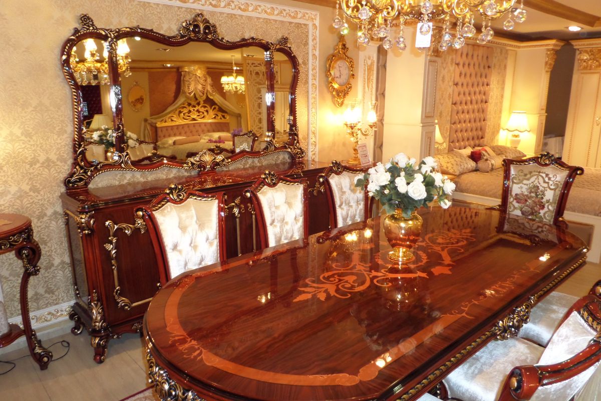 Oval hatlara sahip lüks yemek odası takımı genellikle klasik yemek masası, 8 – 10 sandalye, ahşap vitrini, lüks konsolu isteğe bağlı olarak klasik aksesuar modelleri ile tercih ediliyor. Şık bir tasarıma sahip olan ve kullanıldığı alanda baskın karakteri ile gözleri üzerine çeken yemek odası takımı ergonomik formlar dikkate alınarak üretildi. Rahat ve konforlu bir oturum sunan marküteri yemek odası takımı kullanıcısını memnun ve mutlu ediyor. Lüks yemek odası takımını tercih eden kullanıcılar genellikle takımın kendi grubundan olan Karmen koltuk takımını ve Karmen klasik tv ünitesini de satın alıyor.